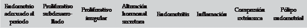 Además, observamos 4 casos con pólipos endometriales, 1 con marcados signos de compresión extrínseca y 2 con endometrio secretor de tipo disociado.