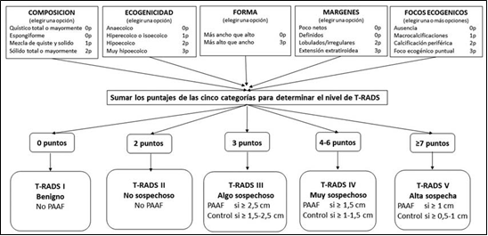 ¿Podrá la clasificación T-RADS determinar eficientemente cuáles nódulos tiroideos requieren una PAAF y cuáles no? Esta decisión determinará qué paciente deberá ser controlado o sometido a una cirugía.