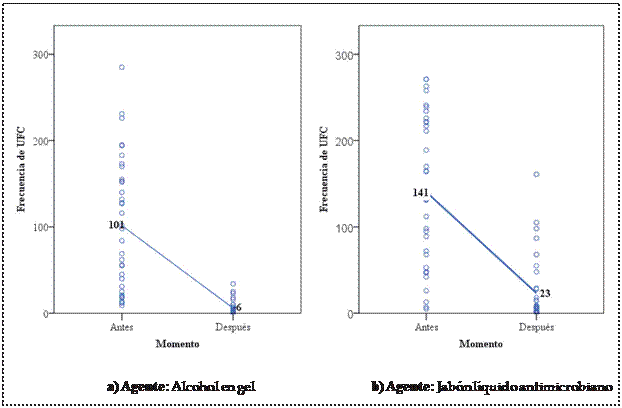 del 94% de las UFC en relación a antes de la HM, y los que se higienizaron