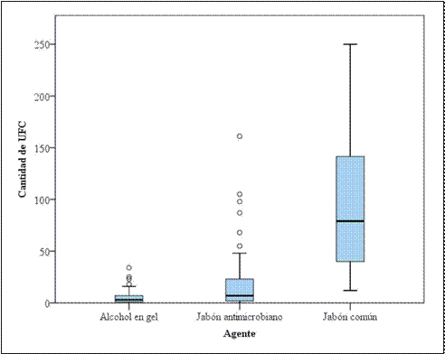 ninguna diferencia estadística entre el uso de preparaciones a base de alcohol y jabón