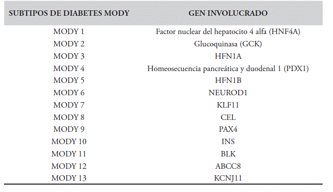Palabras claves: MODY, gen glucoquinasa, diabetes, HNF1A, mutación.
