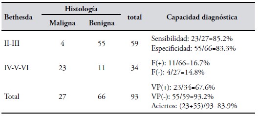 Tabla III. Evaluación de la capacidad diagnóstica de la clasificación Bethesda.