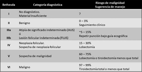17. Bongiovanni M, Spitale A, Faquin WC y col. The Bethesda System for Reporting Thyroid Cytopathology: A metaanalysis. Acta Cytol 56:333–339, 2012.