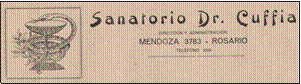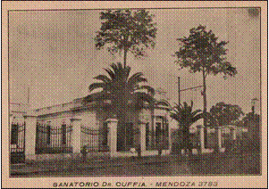 Luego de vender el sanatorio, el Dr. Cuffia y otros colegas instalaron sus consultorios particulares en la casona de Mendoza 3841. Él habitaba la casa de Mendoza 3724.