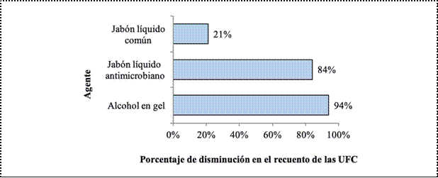 ninguna diferencia estadística entre el uso de preparaciones a base de alcohol y jabón