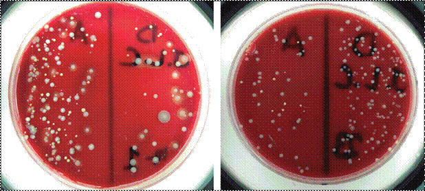 Se realizó un estudio descriptivo, prospectivo, experimental no aleatorio que investigó la eficacia germicida del AG en relación a la del JLA, y el JLC en la HM. Se utilizaron: placas de agar sangre (PAS), hiso-